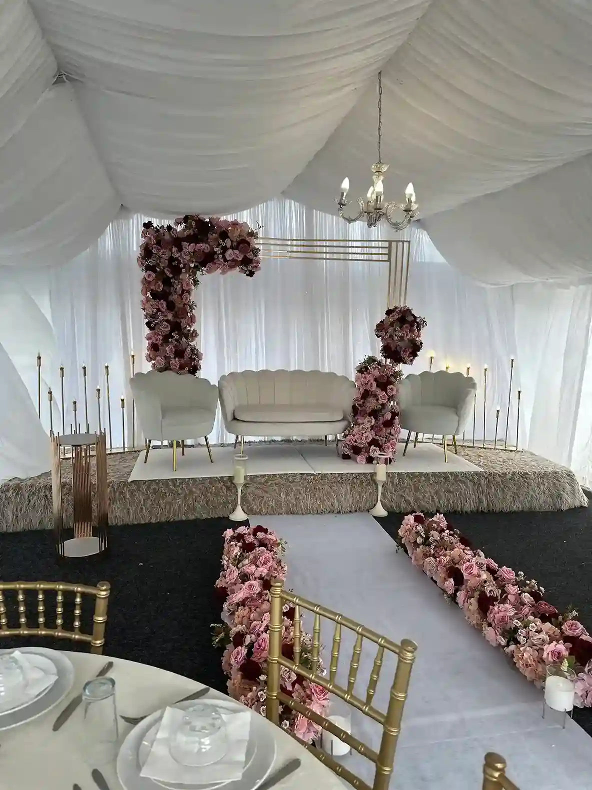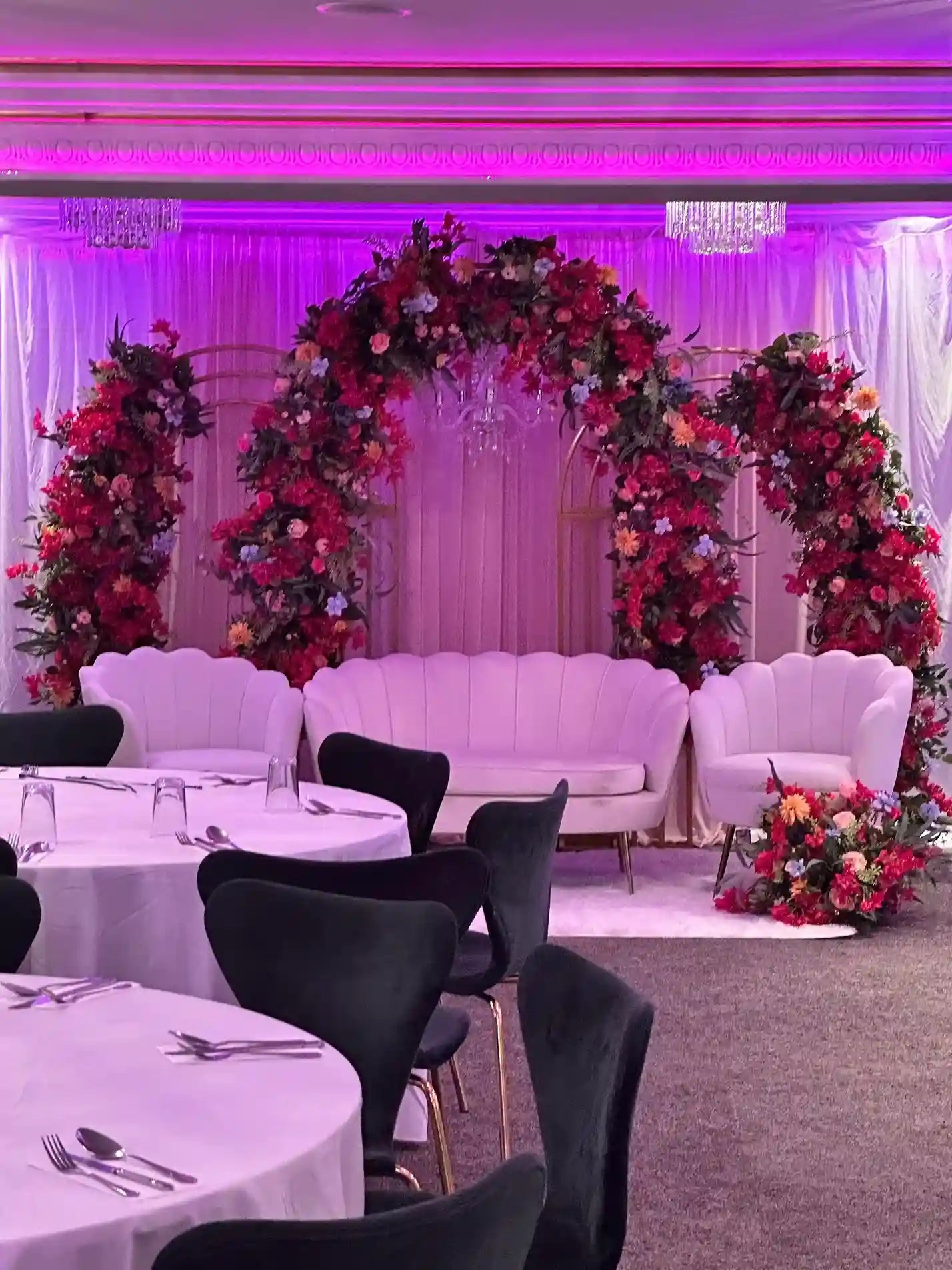 At Serenity Decor, we specialize in transforming venues with exquisite décor tailored to your vision. Our signature wedding stages and vibrant mehndi stages take centre stage, complemented by intricate Nikkah partitions, charming bedroom settings, and elegant staircase accents. We bring warmth, elegance, and attention to every detail, creating unforgettable moments for your special day.